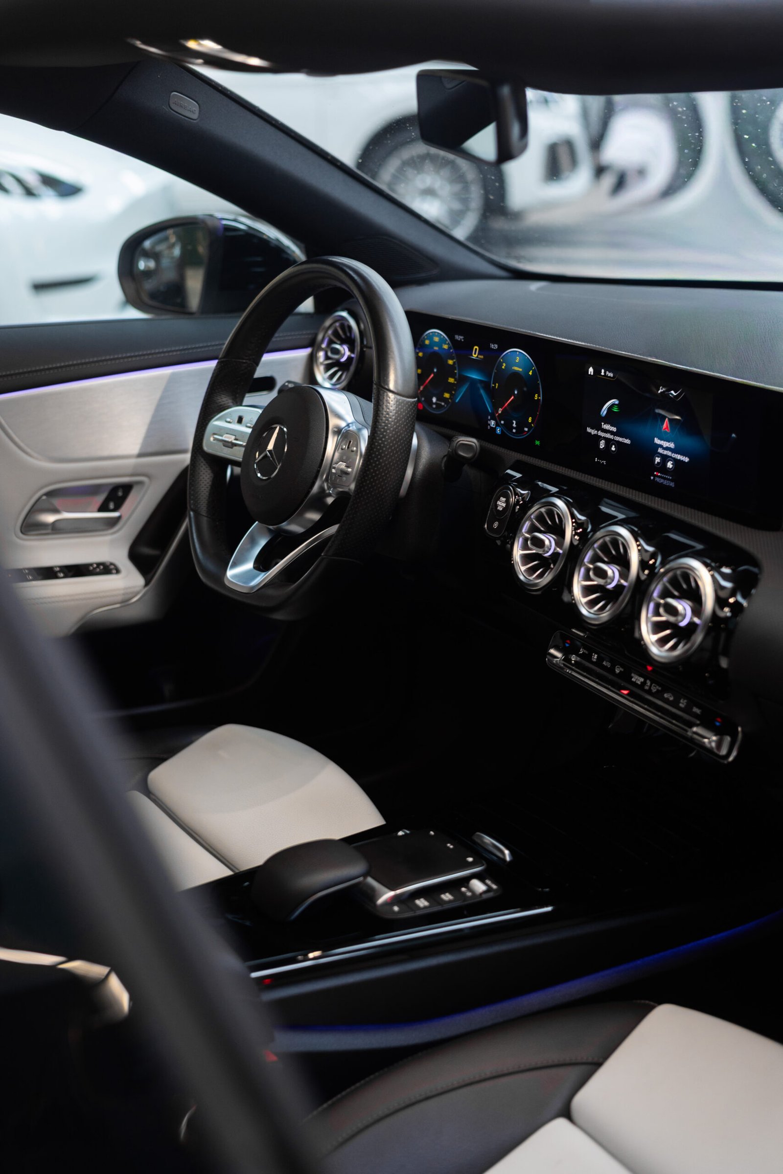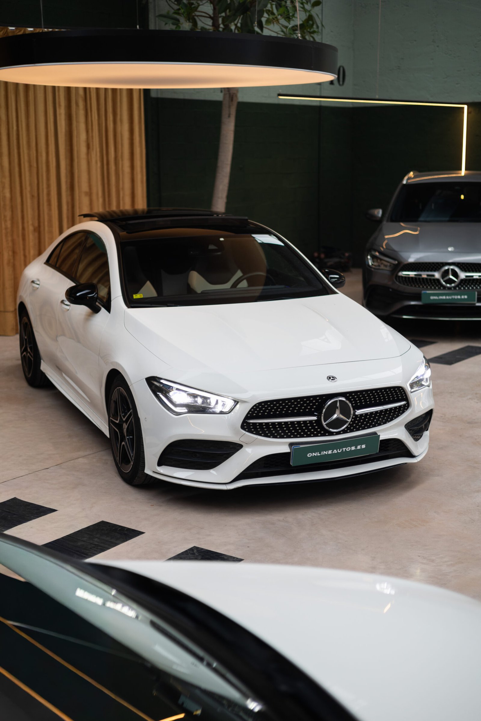 Este Mercedes-Benz CLA 200 D DCT destaca por su elegante diseño de berlina y su completo equipamiento. Dotado con la línea AMG Line, este vehículo combina deportividad y sofisticación con detalles como la iluminación ambiental de 64 colores que crea una atmósfera personalizable en el habitáculo.